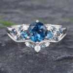 Product Name: Vintage London blue topaz engagement ring set rose gold engagement ring unique bridal set diamond wedding curved anniversary promise ring