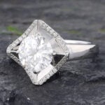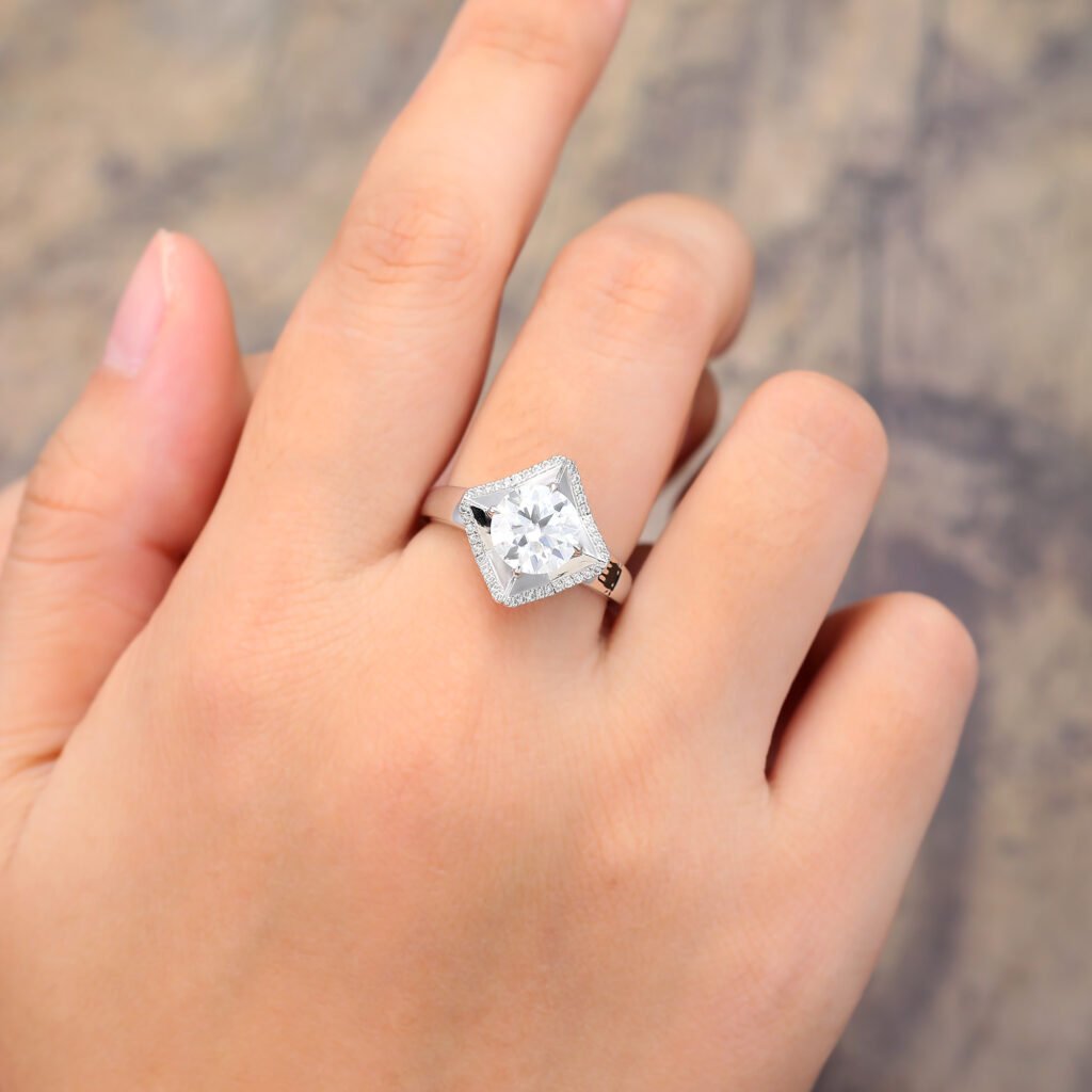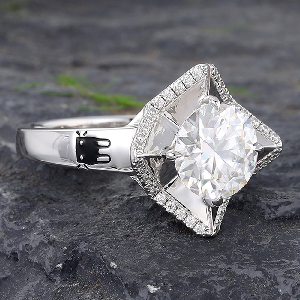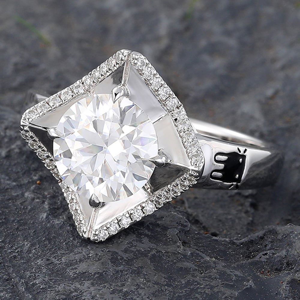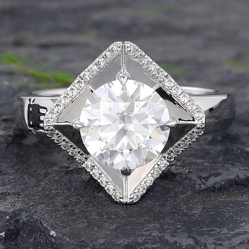 2CT Round Moissanite Engagement Ring Art Deco Pavé Halo Design