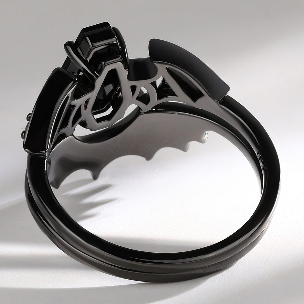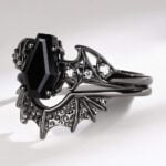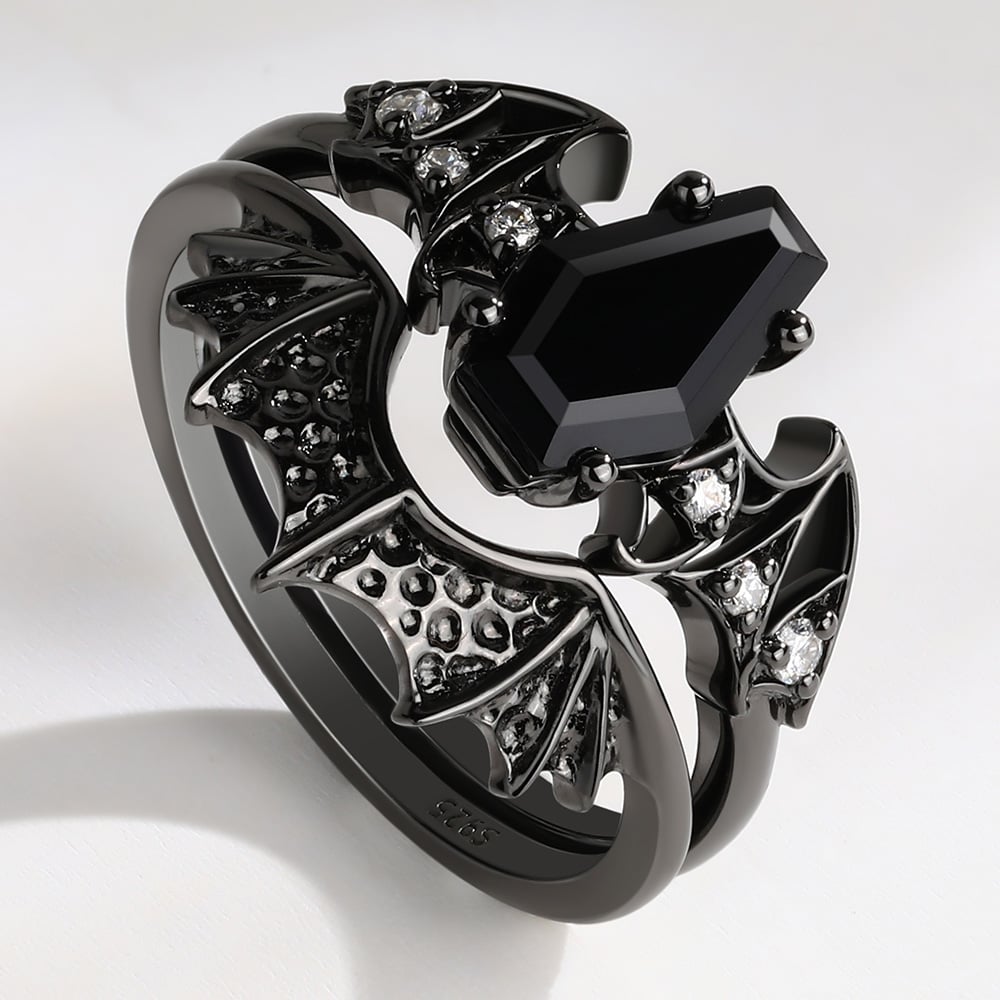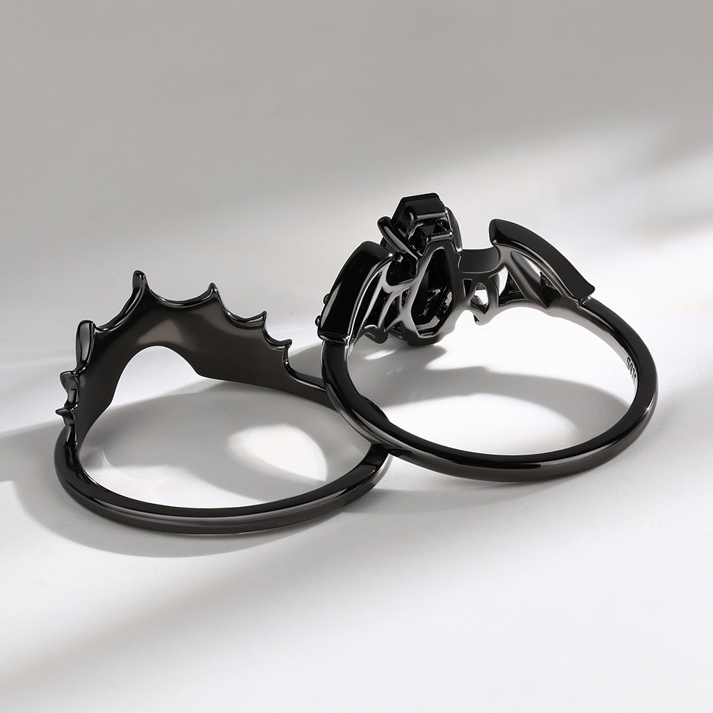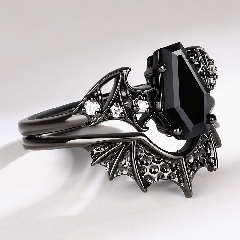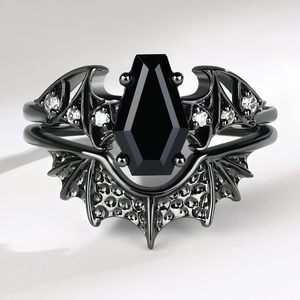 Bat Wing Unique Coffin Cut Black Onyx Engagement Ring Set