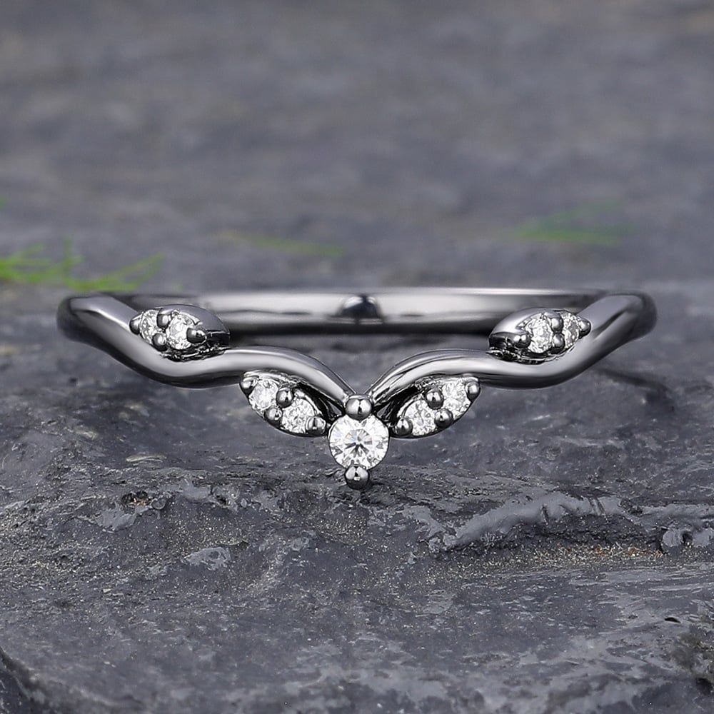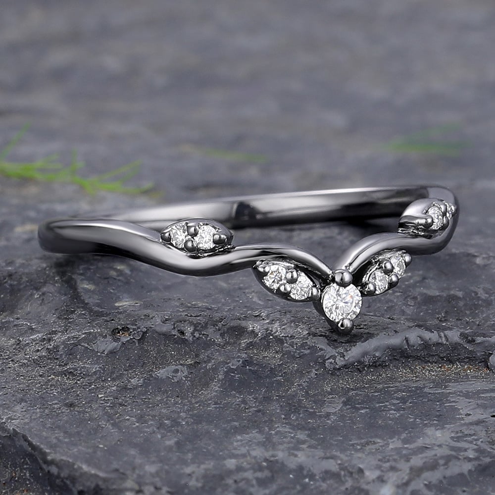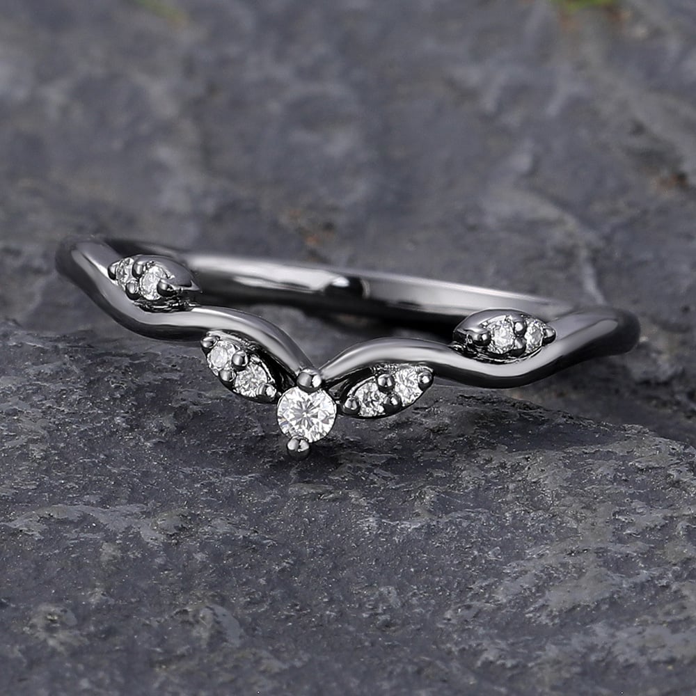 Black Gold Curved Moissanite Unique Diamond Wedding Band