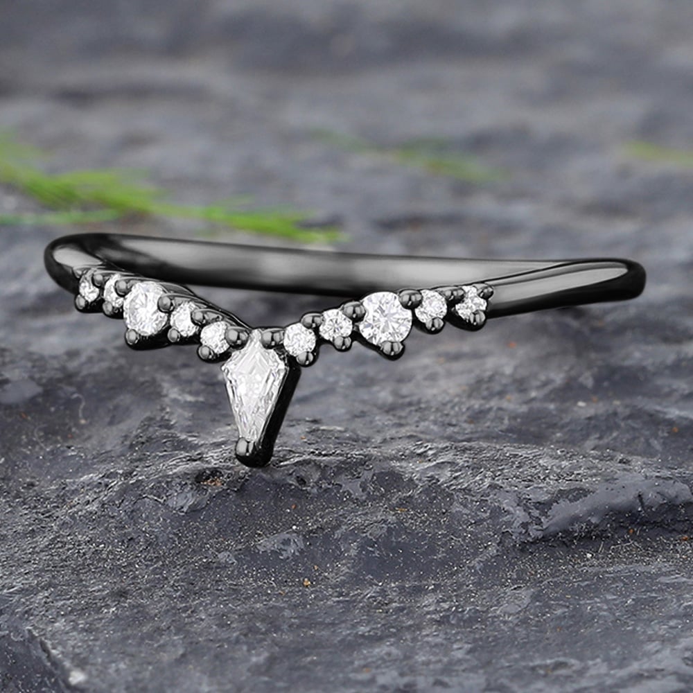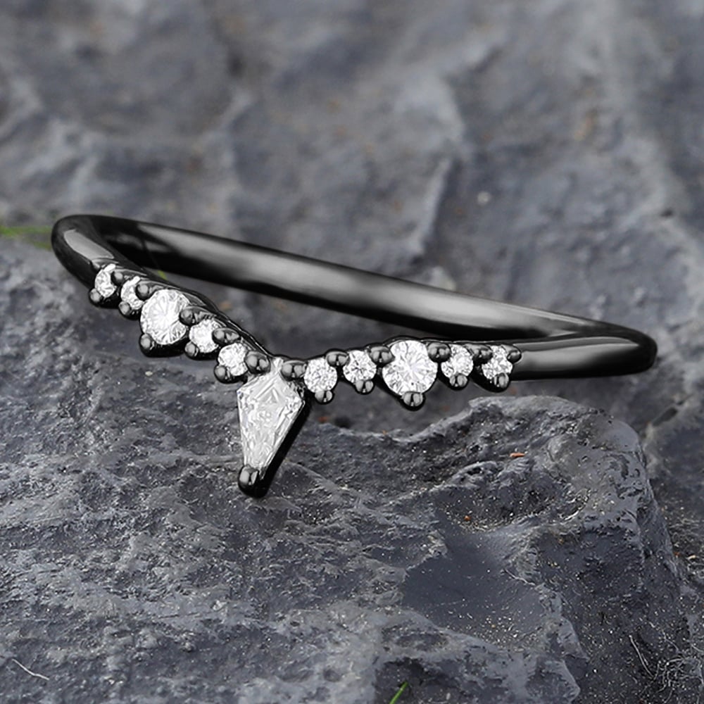 Black Gold Kite Cut Moissanite Curved Wedding Band