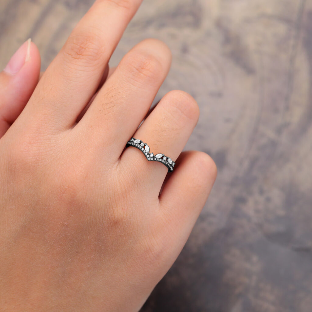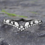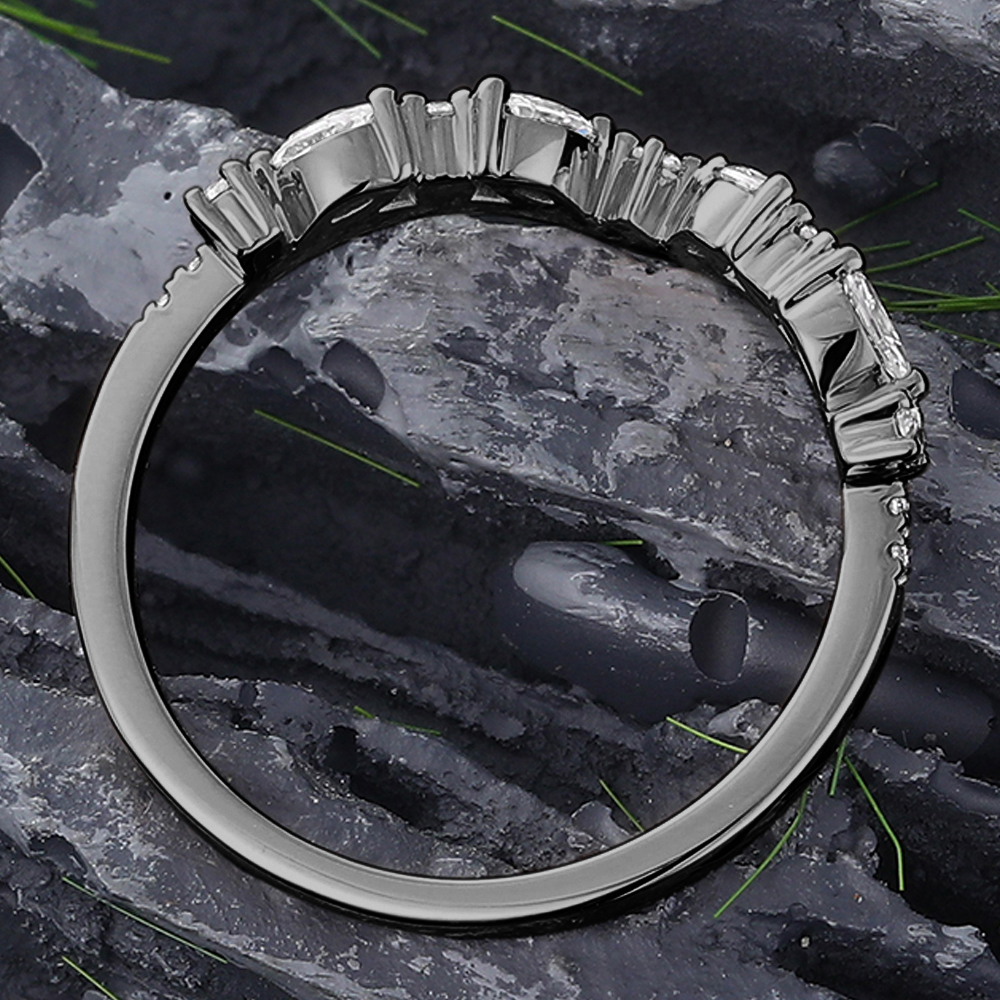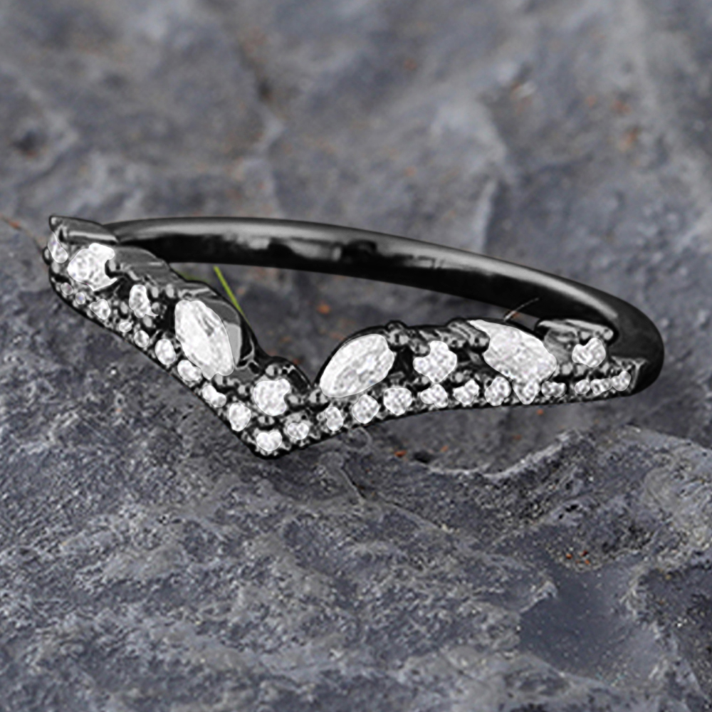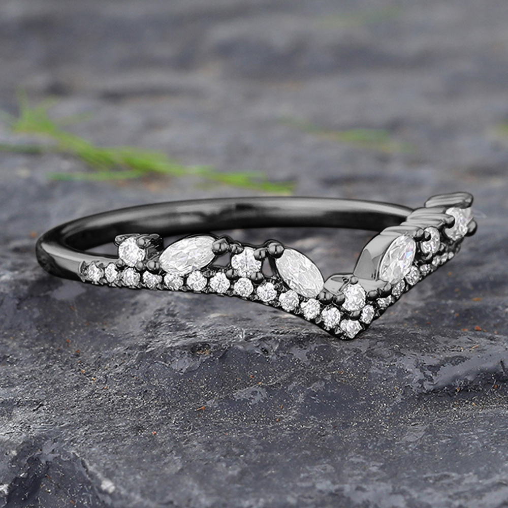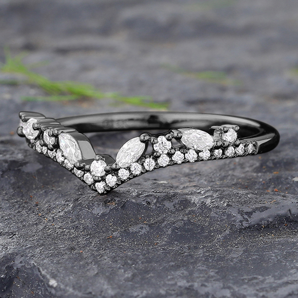 Black Gold Moissanite Cluster Wedding Band Curved Wedding Ring