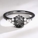 Black Gold Vintage Pear Black Rutilated Quartz Engagement Ring