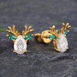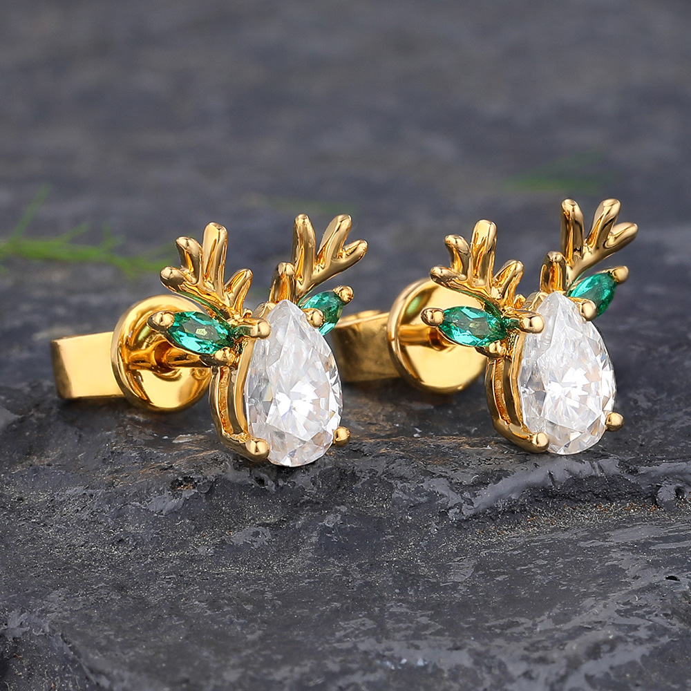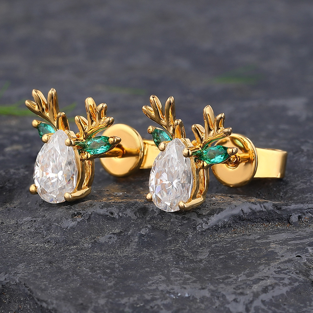 Christmas Deer-Inspired Pear Cut Moissanite Stud Earrings