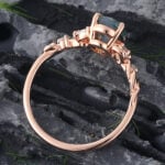 Leaf Design Rose Gold Oval Cut Moss Agate Twisted Engagement Ring