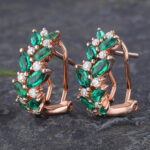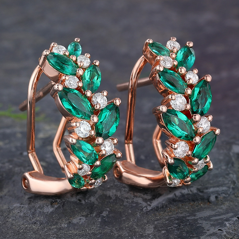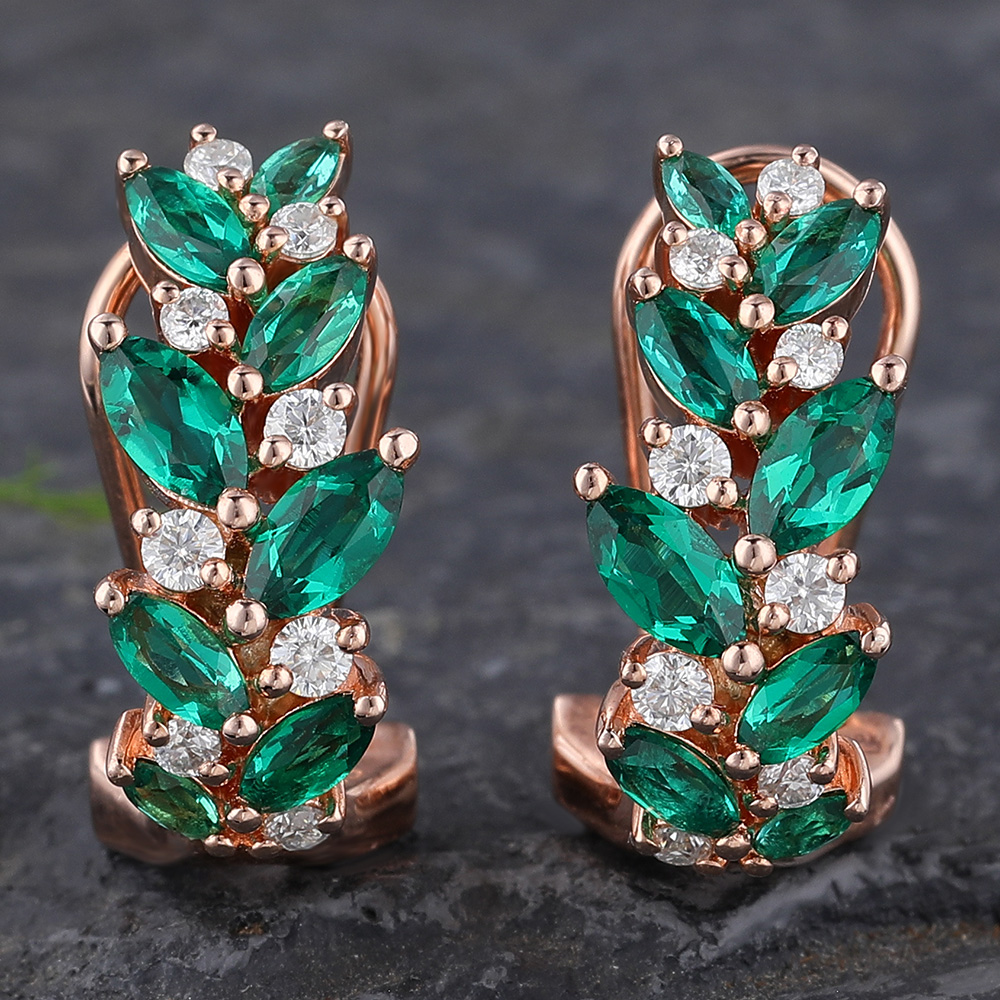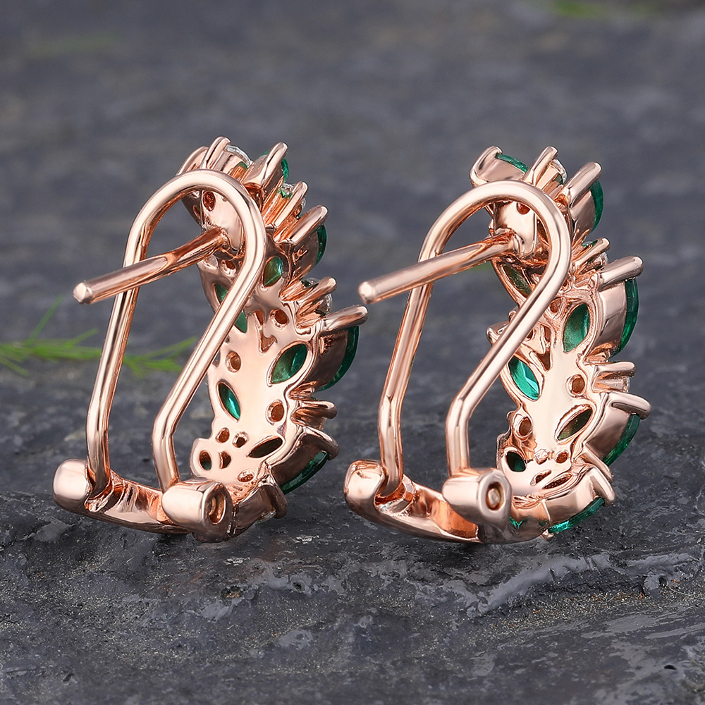 Leaf-Inspired Marquise Emerald Omega Back Earrings