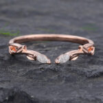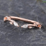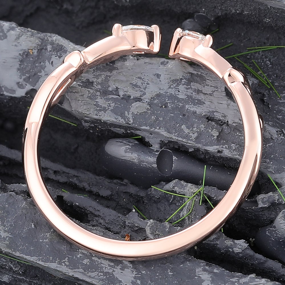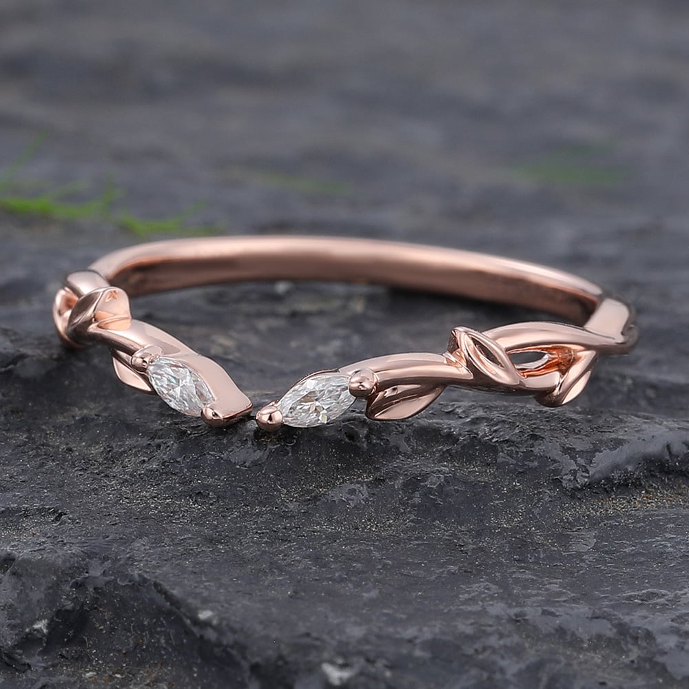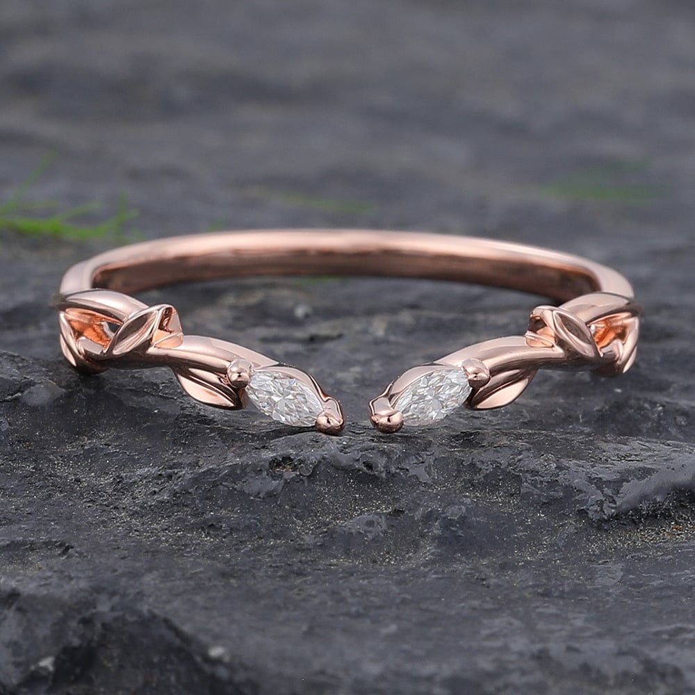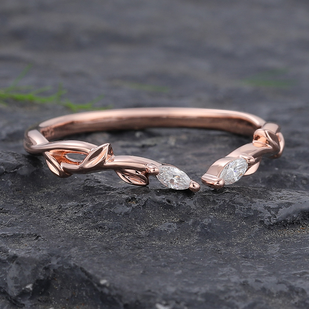 Leaf Rose Gold Moissanite Open Curved Wedding Band