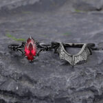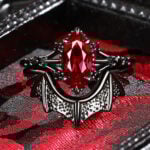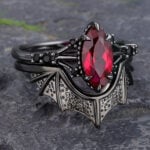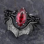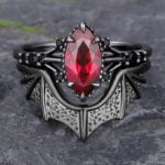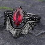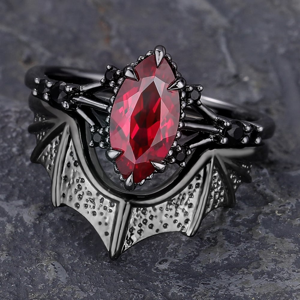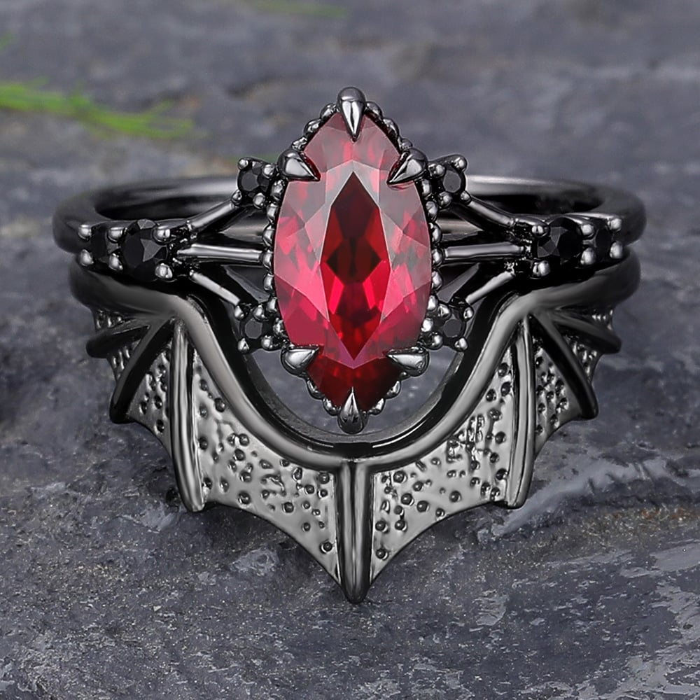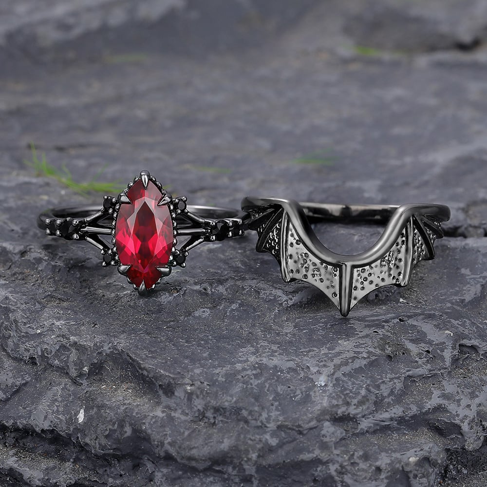Marquise Cut Lab Ruby Engagement Ring Set with Batwing Band