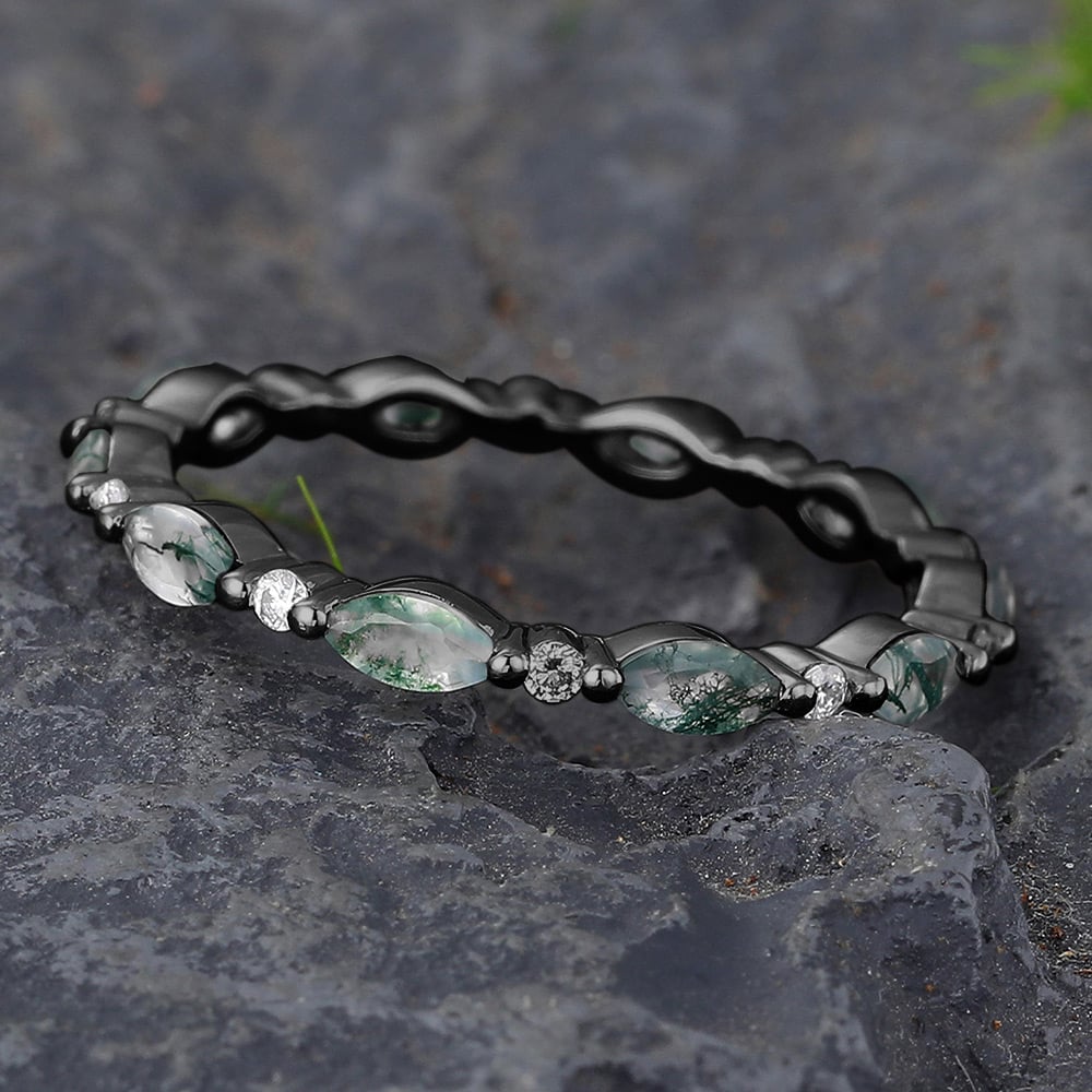 Stone Type: | Moss Agate & Moissanite or Diamonds |