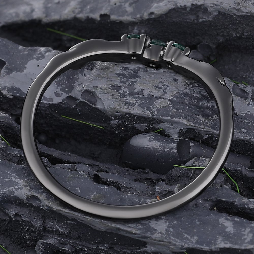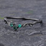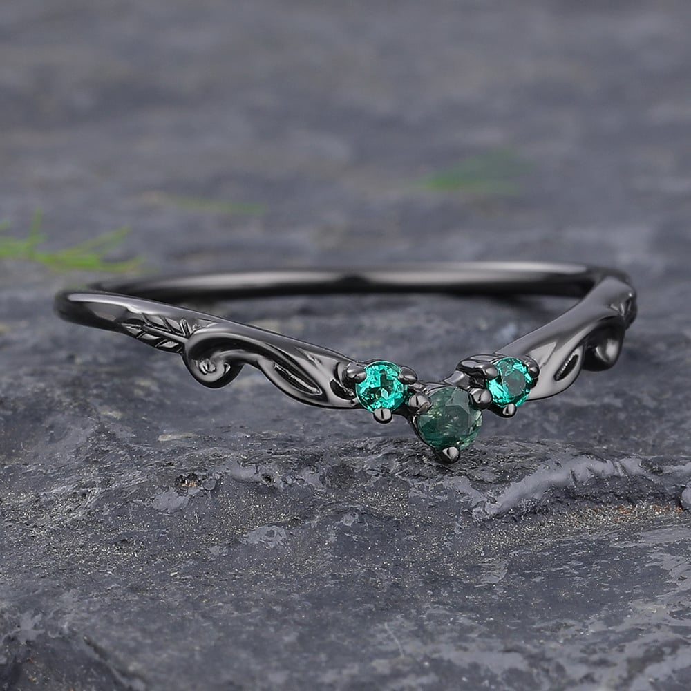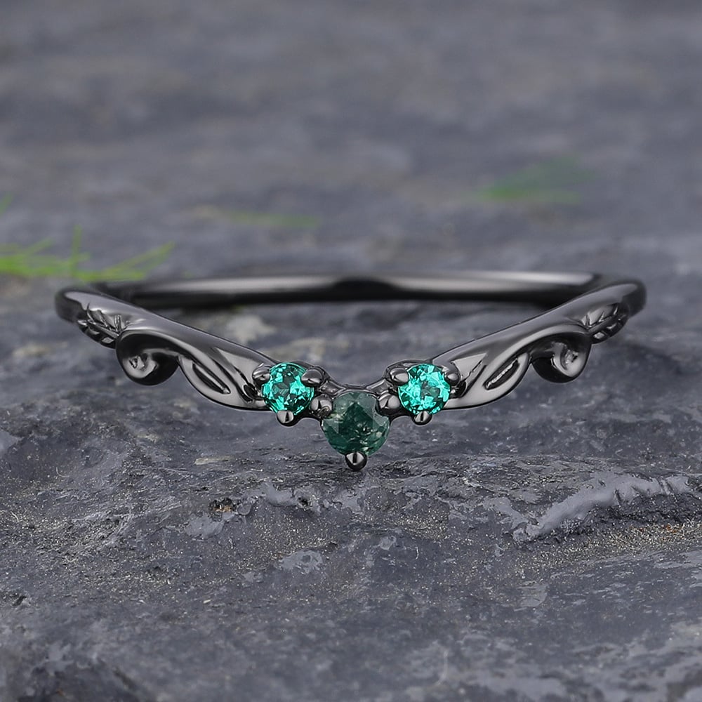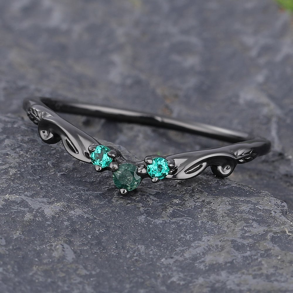 Moss Agate & Emerald Natural Inspired Curved Wedding Band