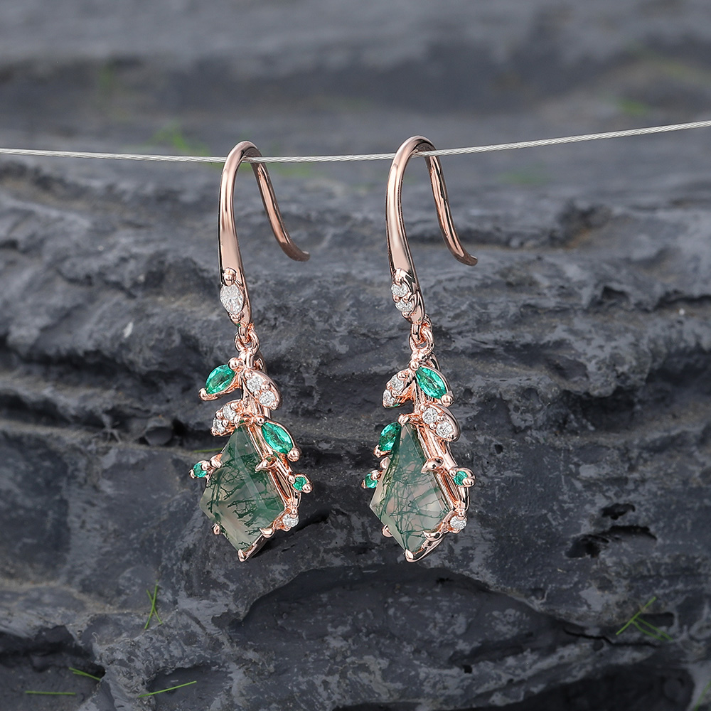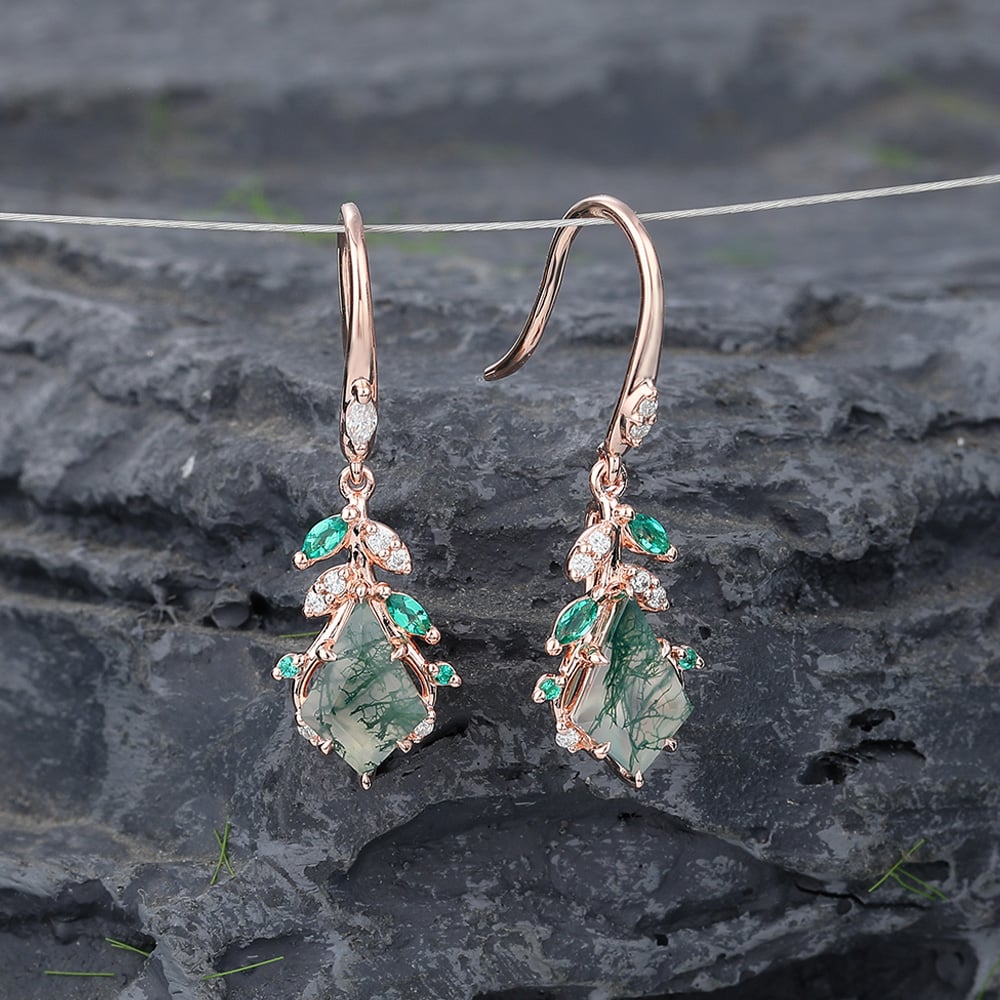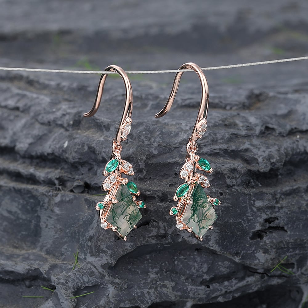 Moss Agate Kite Drop Earrings Nature Inspired Design