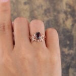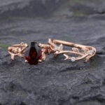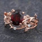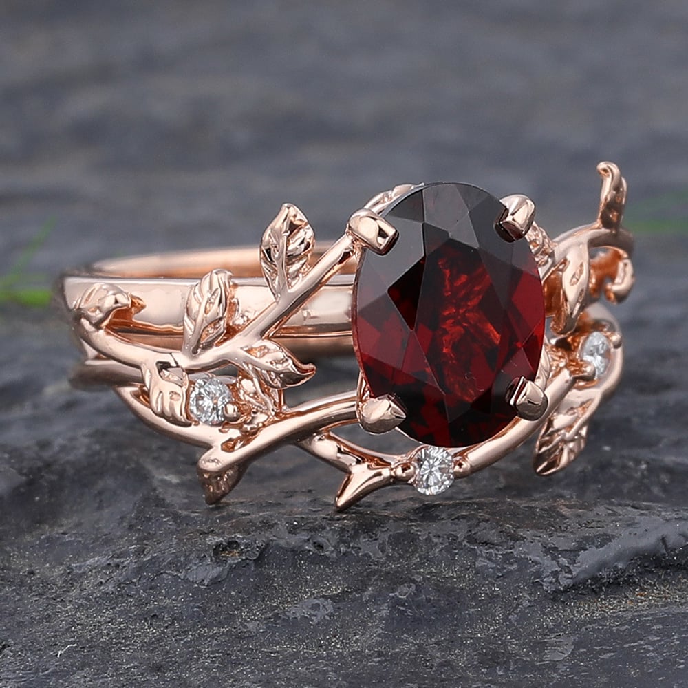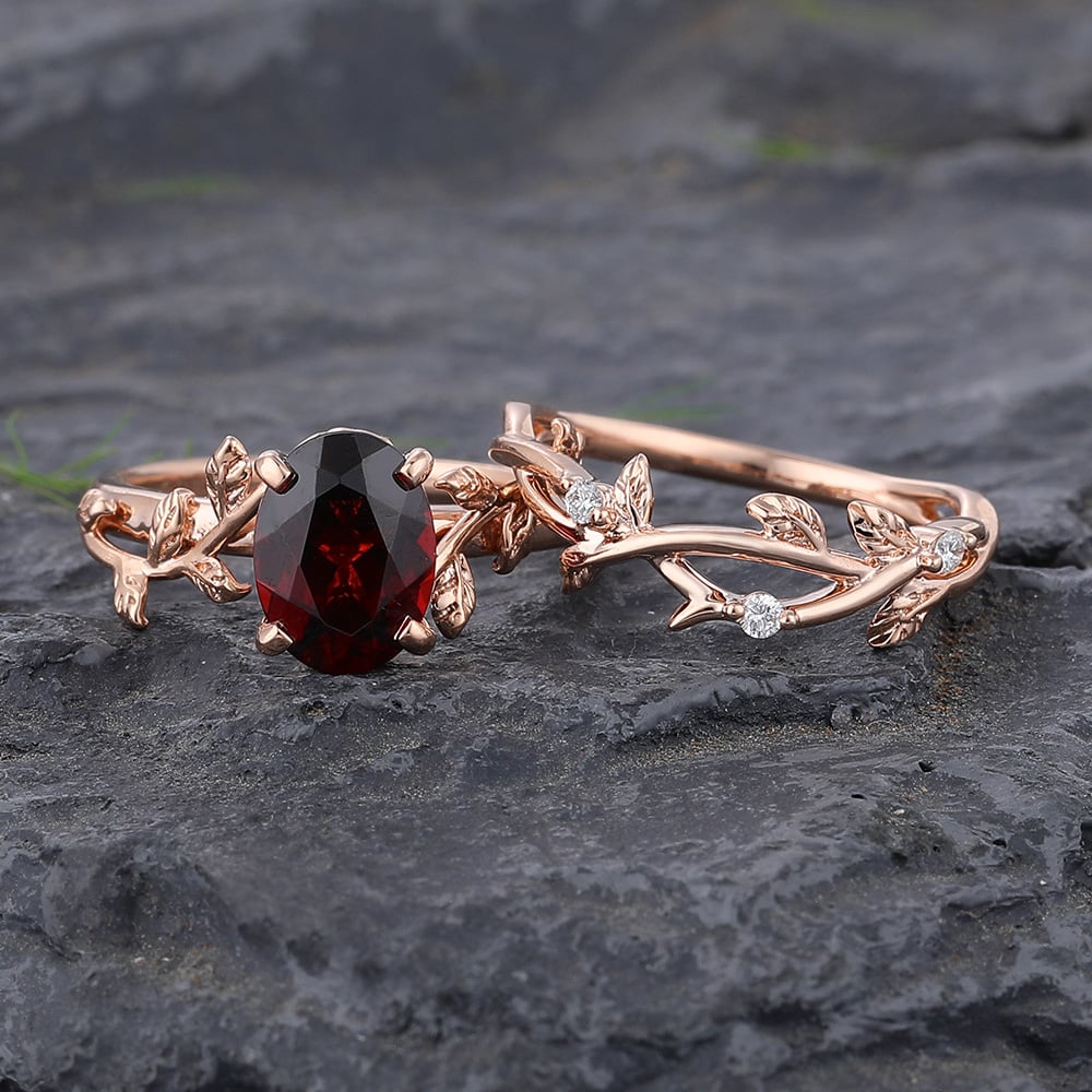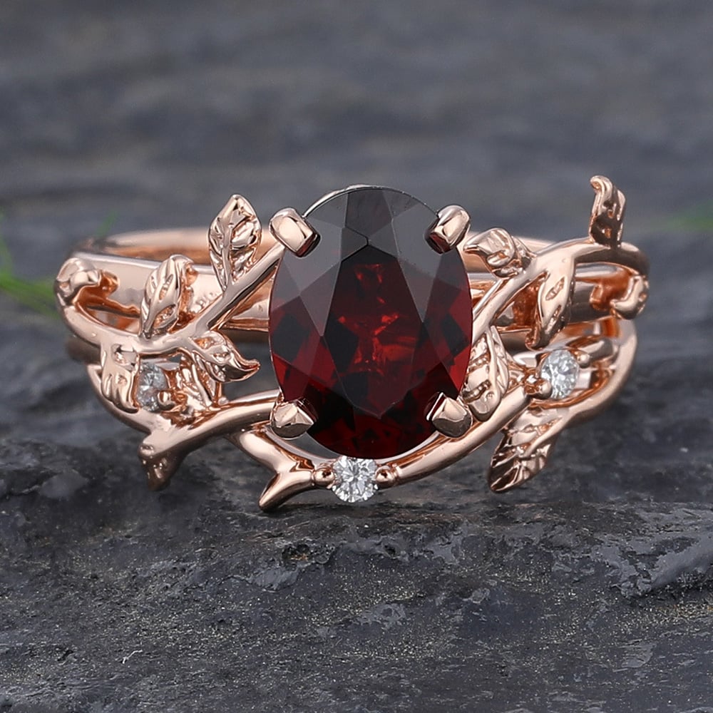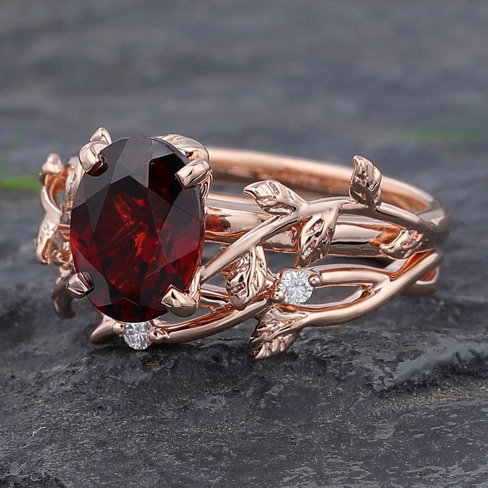 Oval Cut Garnet Engagement Ring Set Twisted Vine Design with Diamond Accents