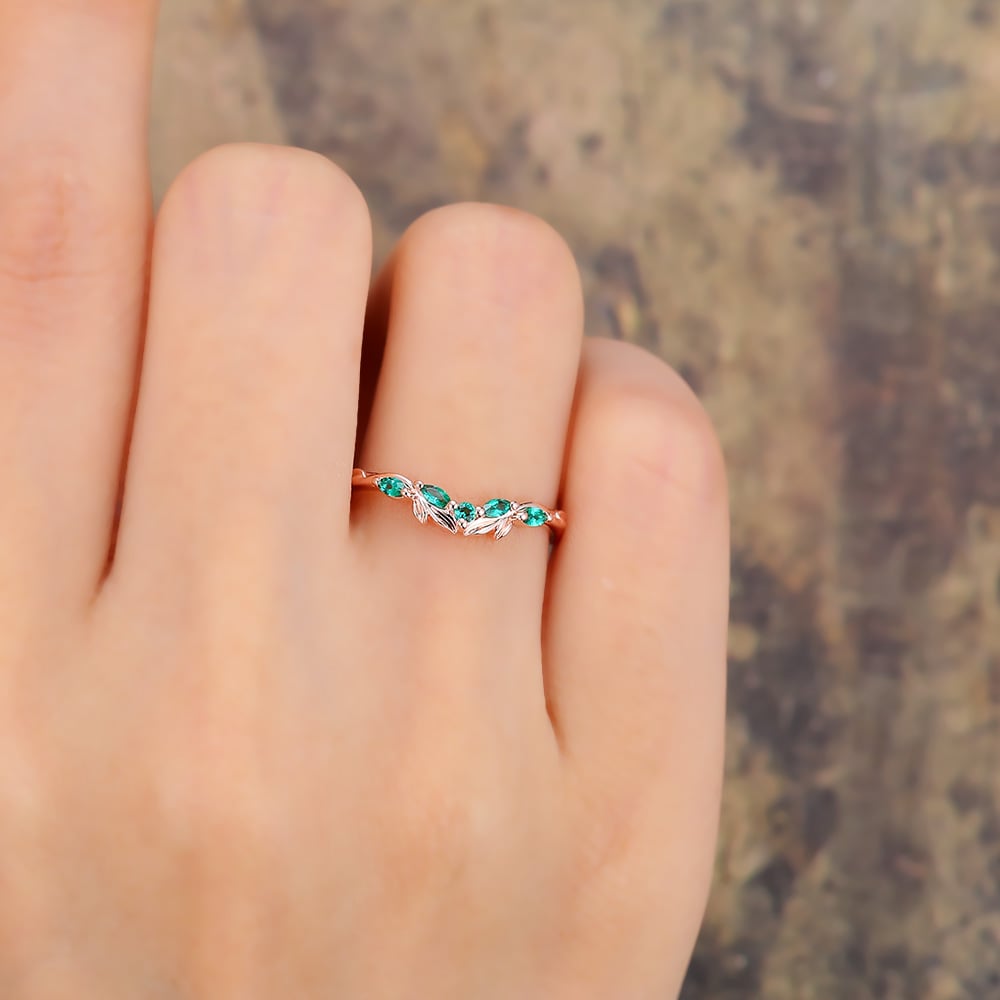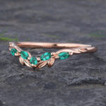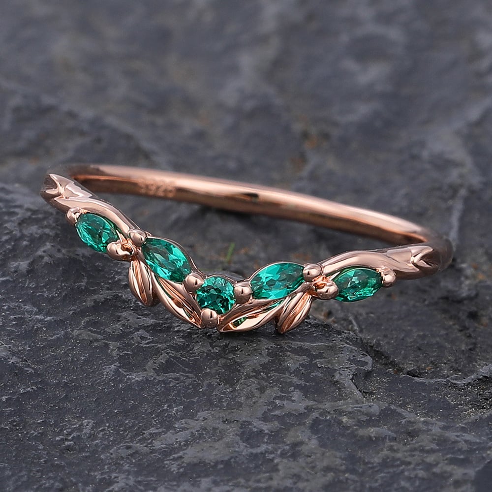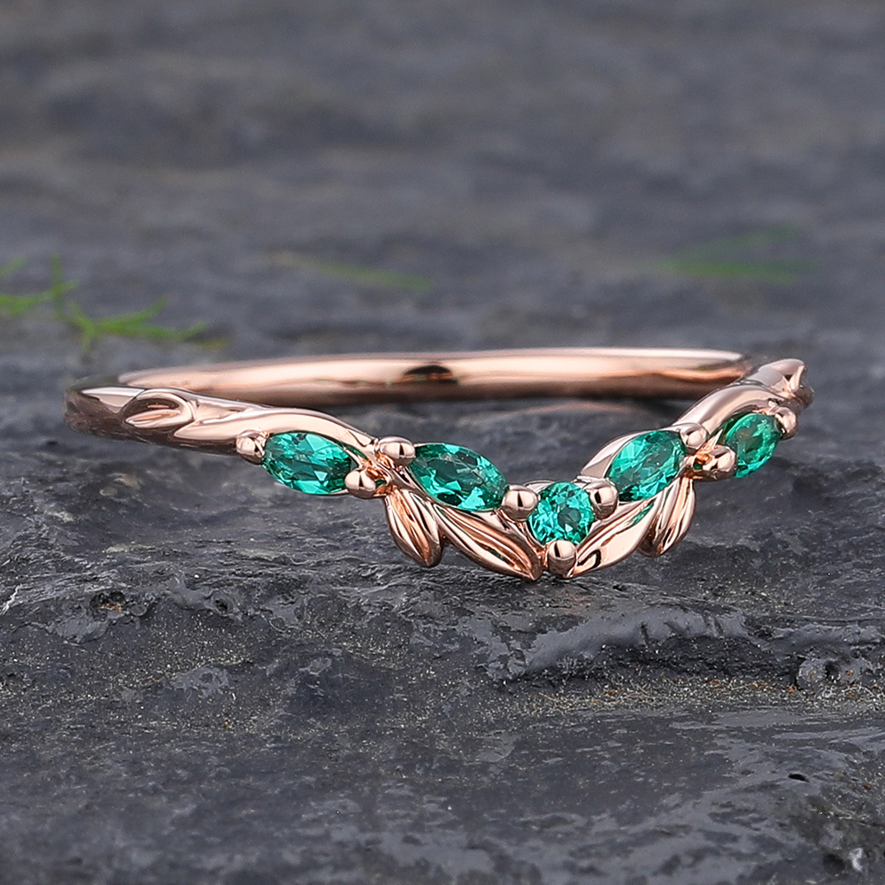 Rose Gold Nature-Inspired Emerald Curved Wedding Band