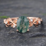 Rose Gold Oval Cut Moss Agate Twisted Leaf Design Engagement Ring