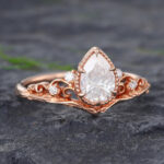 Vintage Pear Shaped Moissanite Engagement Ring In 14K Rose Gold